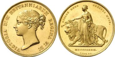 Large grand gold coins of centuries gone by are the ultimate treasures. The most important of all coins in the world are the Great Britain 5 Guineas and 5 Pounds.