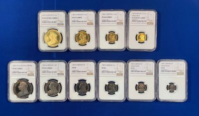 1887 Proof Set (5, 2, Sovereign, Half) in DCAM MS63–64
